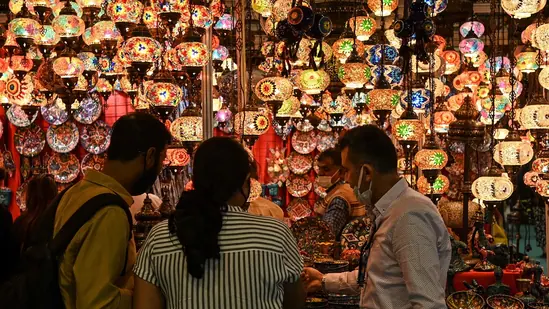 Visitors select a lamp at a Turkish stall during the India International Trade Fair (IITF) in New Delhi on November 14.(AFP)
